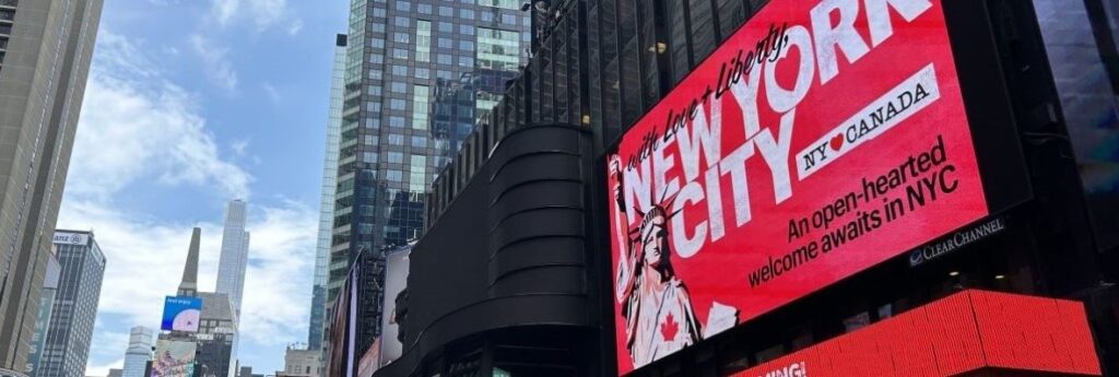 The tribute, visible across the city, was intended as a gesture of friendship and connection and honoured the “deep-rooted cultural, economic, and personal ties between Canadians and New Yorkers, bonds built on mutual respect, shared values, and decades of cooperation, according to New York City Tourism + Conventions.”